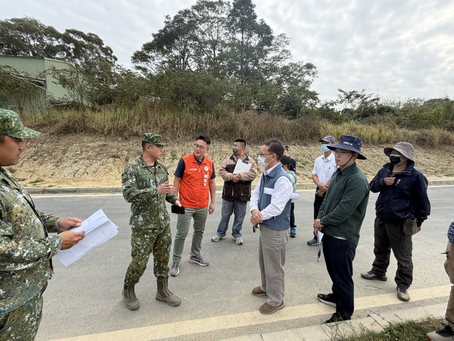 ▲市議員陳皇宇等市府相關人員相關會勘關廟砲校周邊。(陳皇宇 提供)