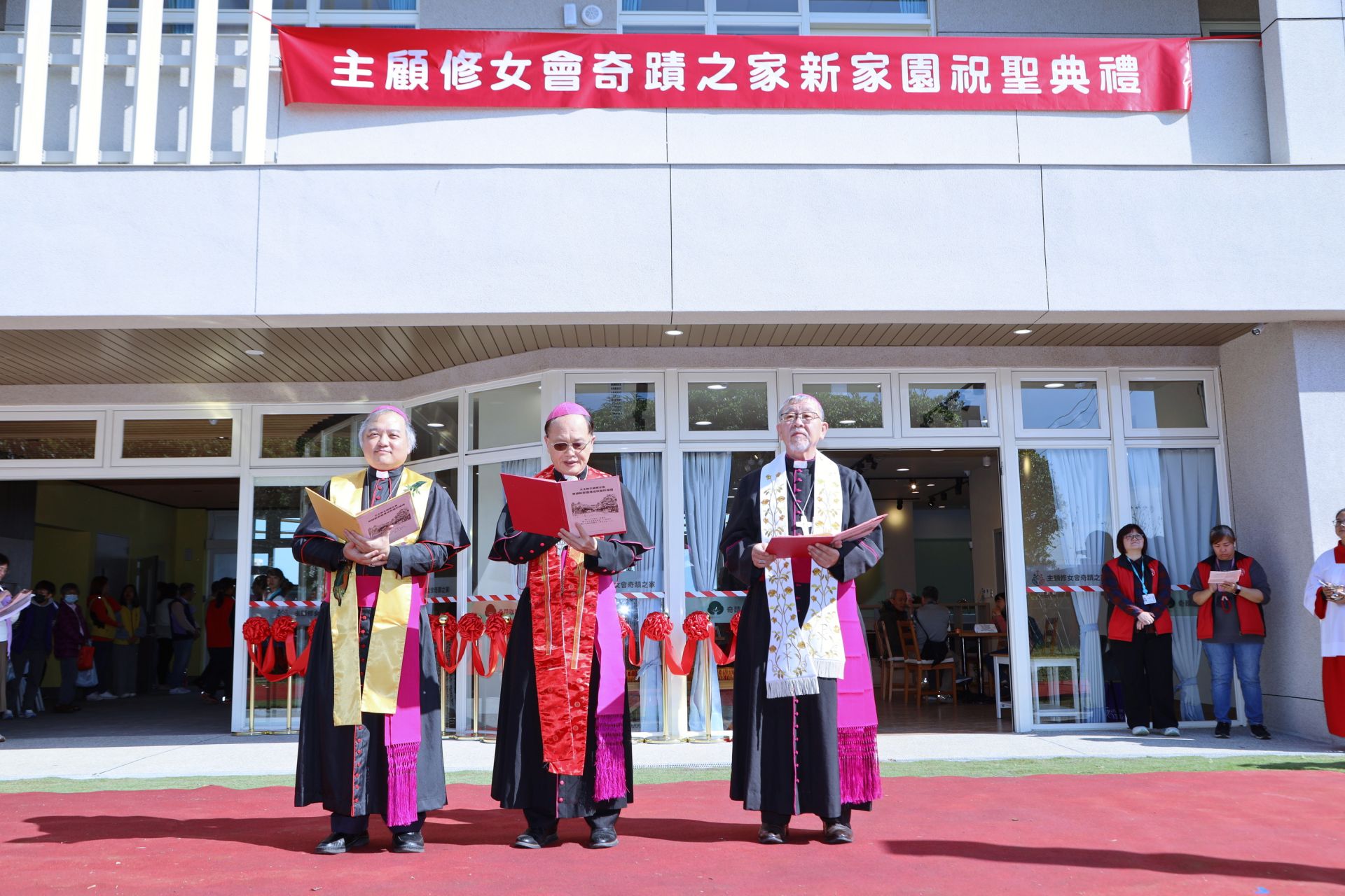 啟用典禮在頂泰山巖鼓藝團氣勢磅礡的演出中揭開序幕,奇蹟之家日照中心與社區關懷據點的長輩也帶來活力健康操,並接力獻唱感恩歌曲,場面溫馨動人。落成祝聖典禮由天主教台北總教區輔理主教趙永吉、台中教區主教蘇耀文及台南教區榮休主教李若望共同主禮,全程莊嚴隆重,見證這座「以愛為名」的家園正式啟動服務。