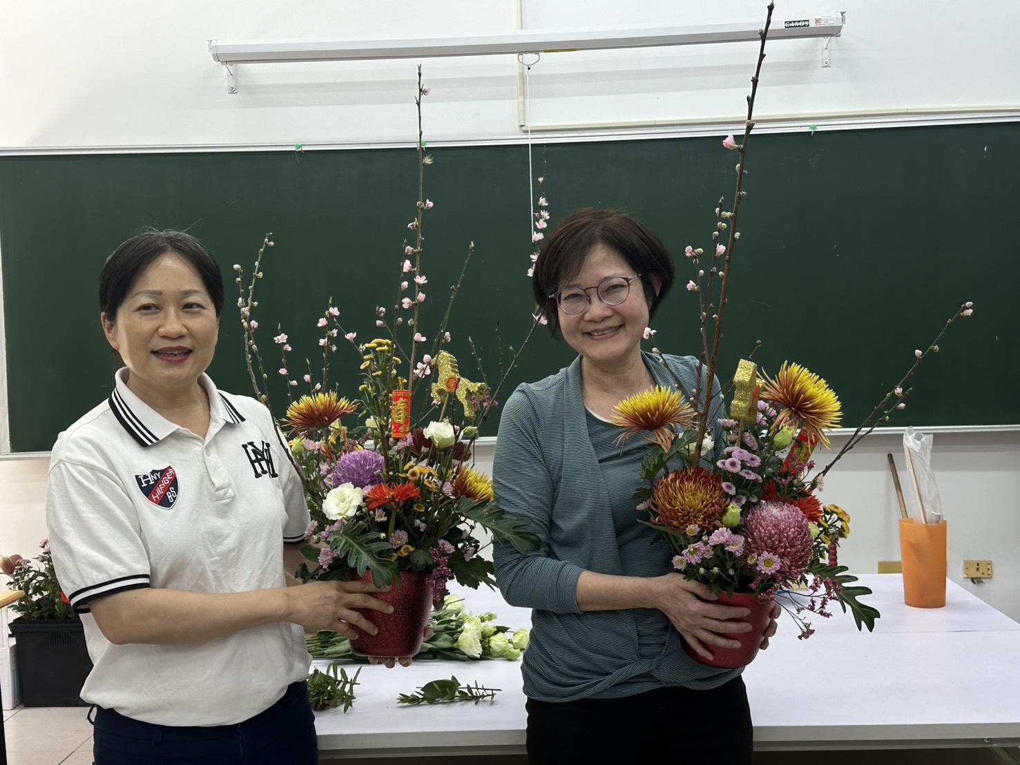 蔡玉娟老師除為艾華植藝工作室創辦人外,亦為財團法人中華花藝研究推廣基金會雲嘉南地區指定教室之專業講師,長年致力於花藝推廣與教學,經驗豐富、教學熱忱十足。她於課堂中分享,隨著社會與經濟逐步發展,民眾對美感生活的需求日益提升,學習花藝不僅能紓解生活壓力、增添生活樂趣,亦有助於促進同好交流。將親手完成的作品融入居家空間,不僅能提升生活品質,也能與家人共享美好時光。