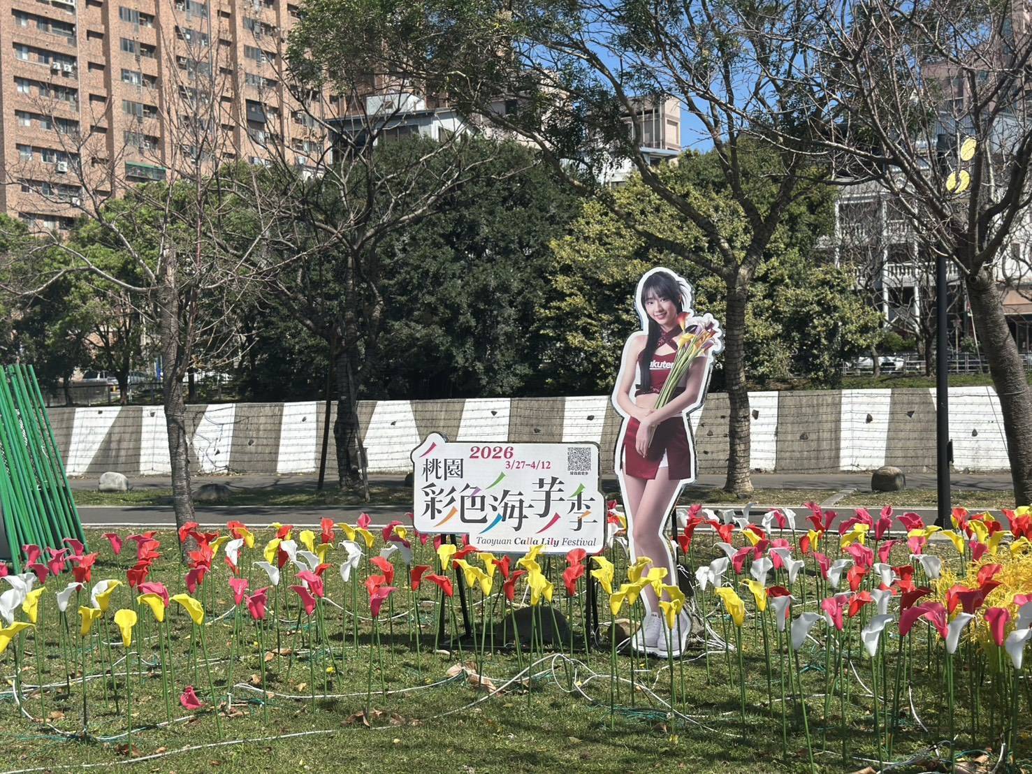農業局主題燈區結合各種巧思,整體燈區布置還有金黃稻穗,象徵桃園魚米之鄉特色,此外也融入彩色海芋、繡球花海等桃園特色活動元素,預約市民朋友一起到3月27日起登場的「彩色海芋季」、5月9日起登場的「花現台七-繡球金針農遊趣」同樂。
