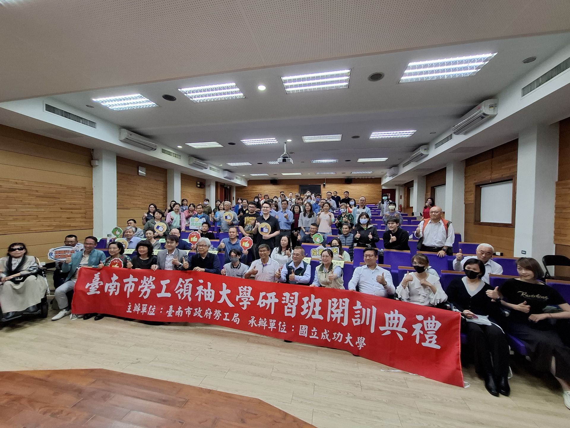為落實市長黃偉哲打造「希望家園」的施政願景,臺南市政府勞工局攜手國立成功大學辦理「勞工領袖大學研習班」,並於今(24)日成功大學成功校區格致廳舉行開訓典禮。國立成功大學推廣教育中心主任辛致煒、臺南市政府勞工局長王鑫基、主任秘書陳美顏、職訓就服中心梁偉玲主任、社團法人臺南市勞工領袖協進會陳美靜常務監事及成功大學國際經營管理研究所所長張佑宇出席,鼓勵學員透過終身學習,強化職場職能,為職涯發展累積實力。
