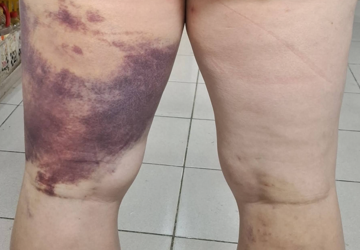 苗栗社運人士陳祺忠遭棍棒攻擊大腿淤傷。翻攝陳祺忠臉書