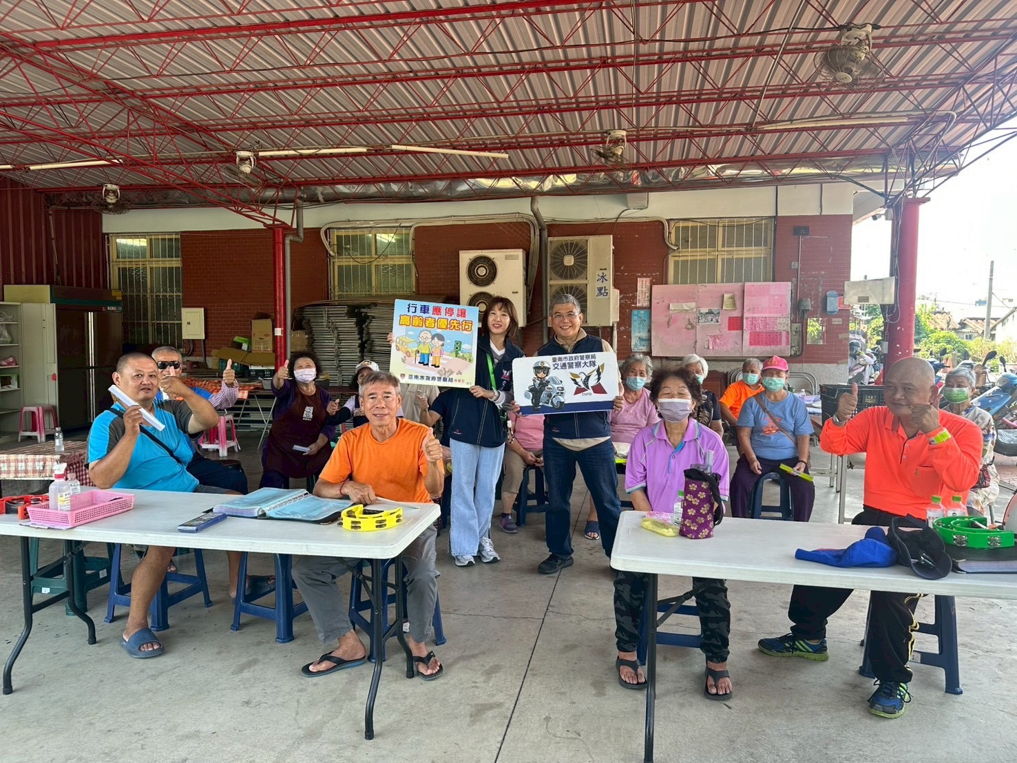 交通警察大隊大隊長黃宗仁呼籲,面對高齡社會來臨,交通安全更需要全民共同來維護。警察局將持續深入各地社區廟宇及關懷據點,與長輩面對面互動,用親切的方式強化安全觀念,提醒行經路口務必「慢、看、停」,以行人安全為優先;讓長輩「行得安心、動得開心」,共同營造友善、高齡者安心出行的交通環境。